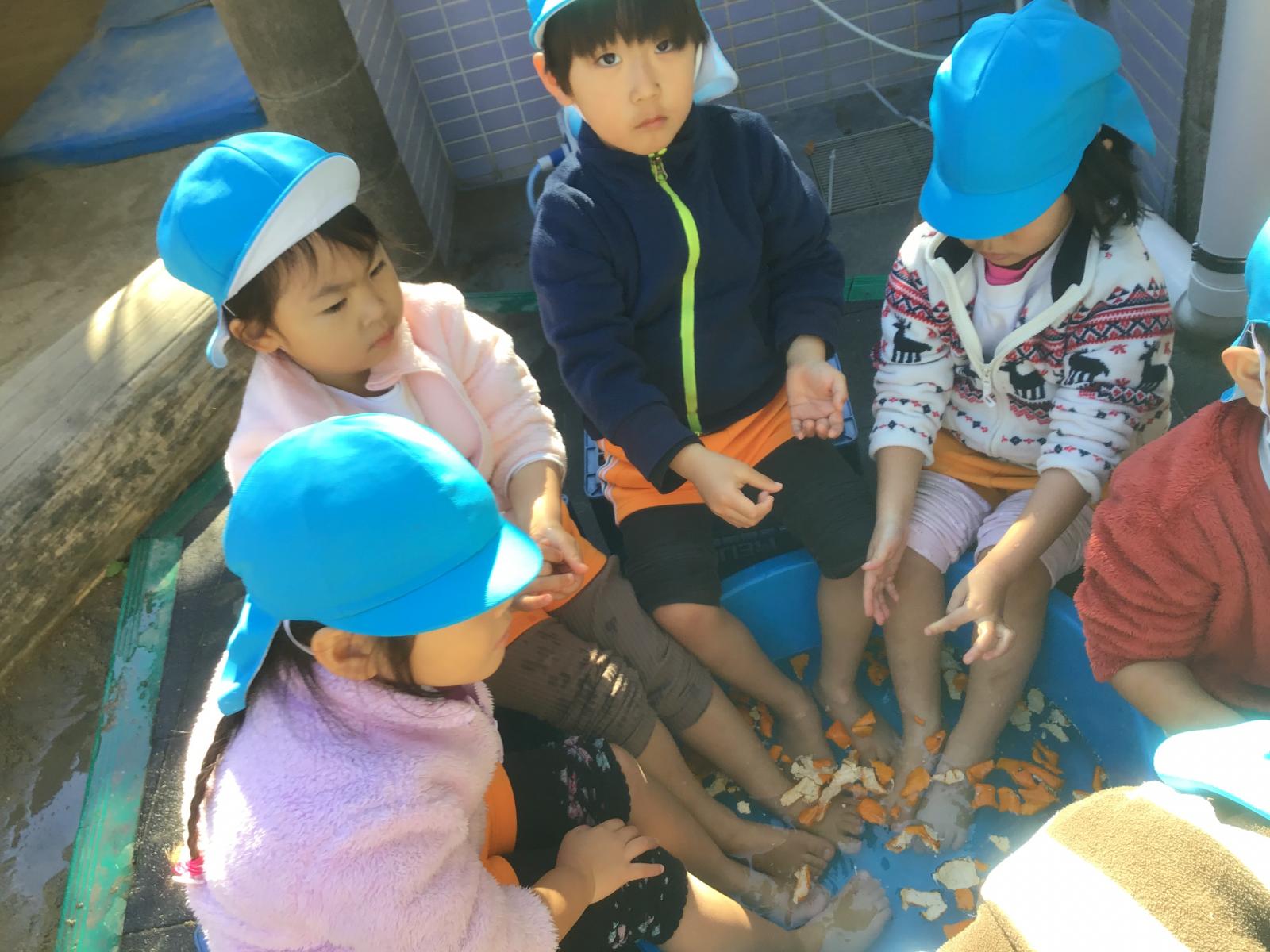 みかんの皮は以前のおやつの時にみんなが剥いたもの‼