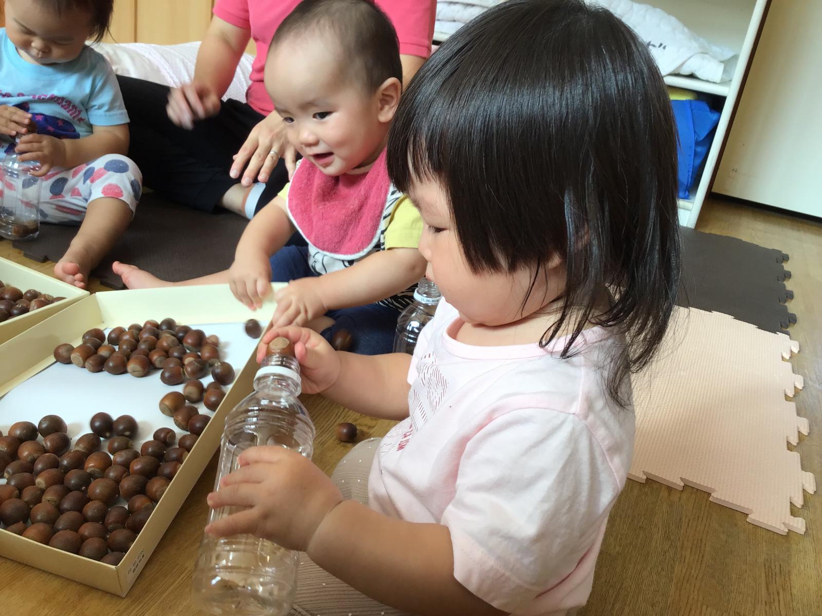 次から次へとどんぐりを入れ始めましたよ♡