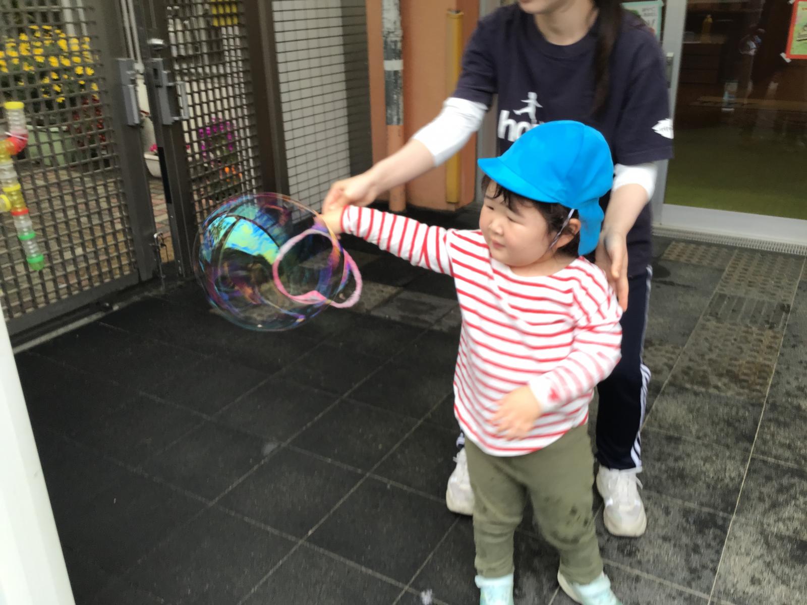 大きなしゃぼん玉できるかな?わくわくするね!