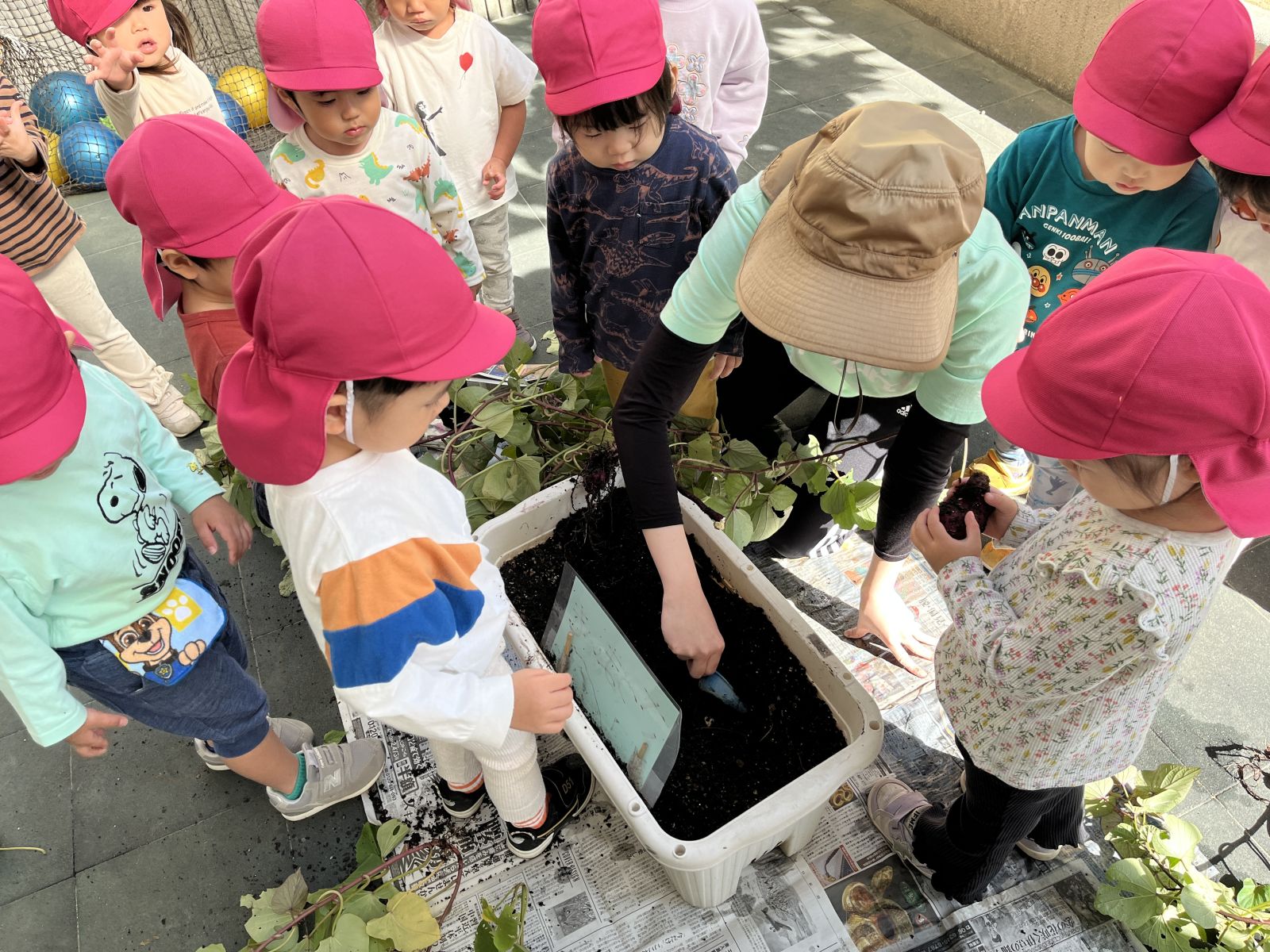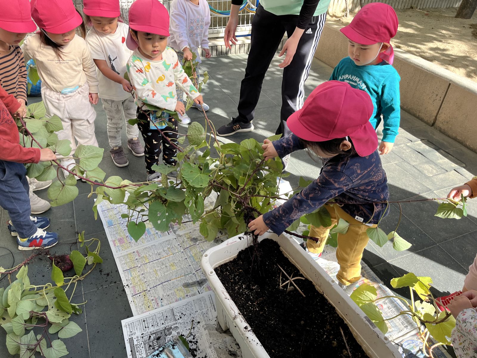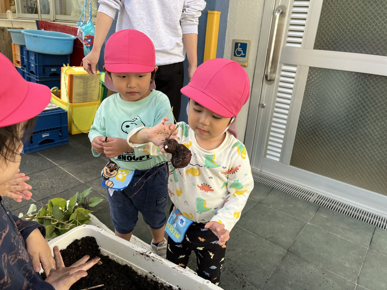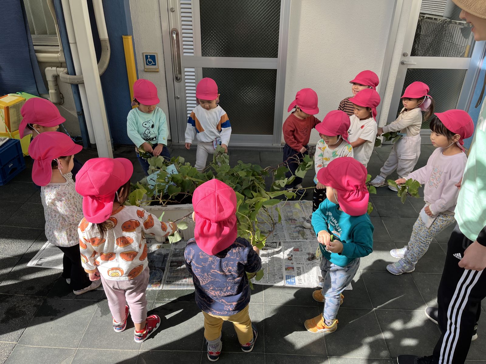 先日、保育園で育てていた芋を皆で収穫しましたよ。