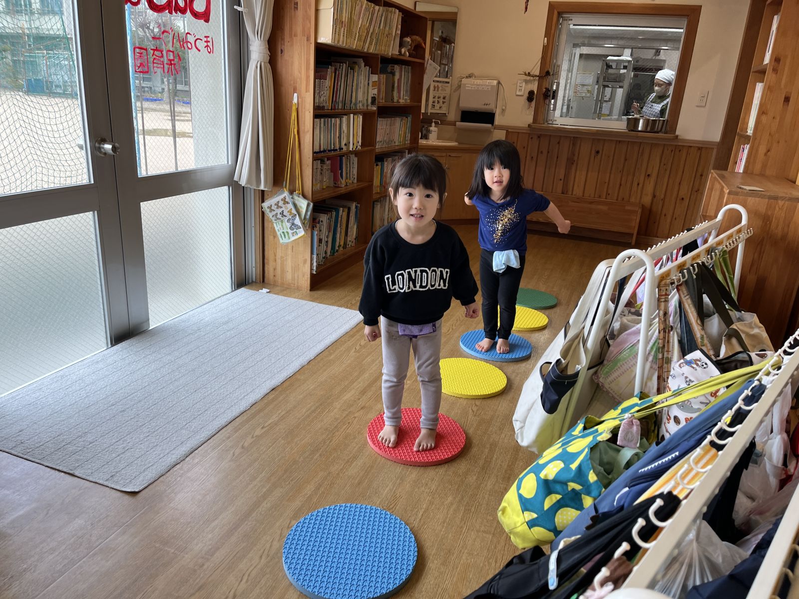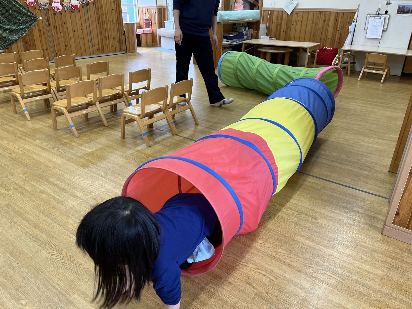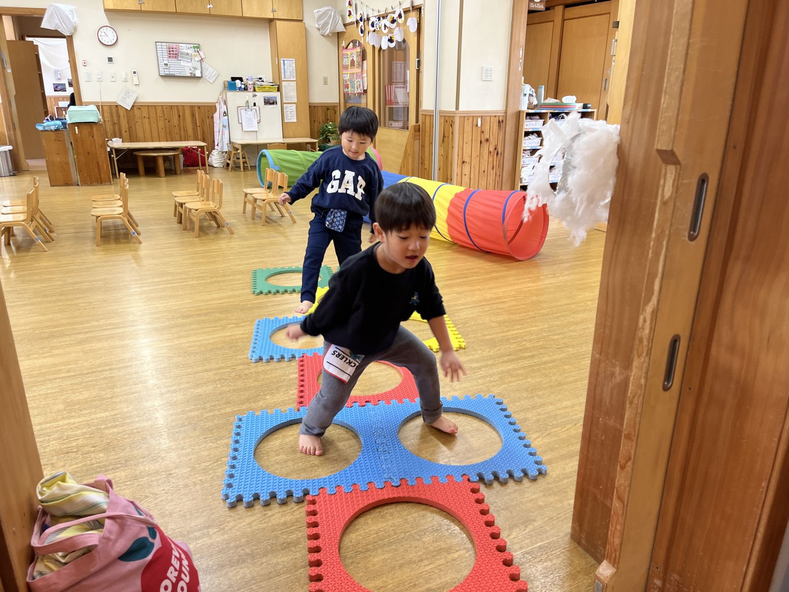 ぴよ・にゃん・ぴょん・廊下を使用して、にんじゃサンタたちが修行出来るように巨大なサーキットのコースを作り、身体を動かして楽しみましたよ。