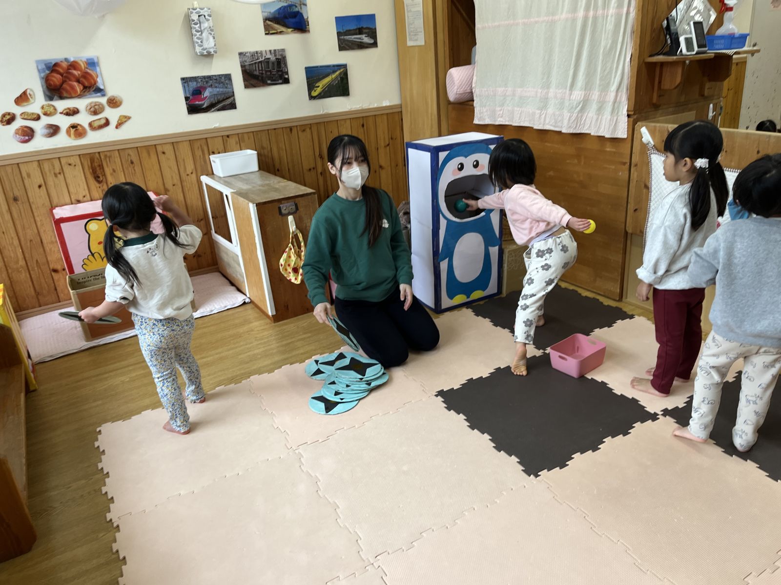 絵本遊びや表現あそびを通して、自分なりに表現する楽しさや友だちと一緒に何かになりきって遊ぶ喜びなどを感じてほしいと思います♪