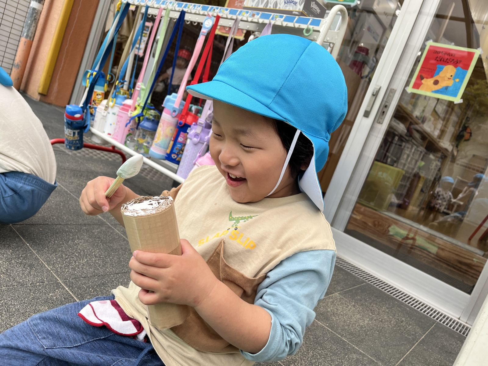 スプーンを使って絵の具をたっぷり付けるよ☆