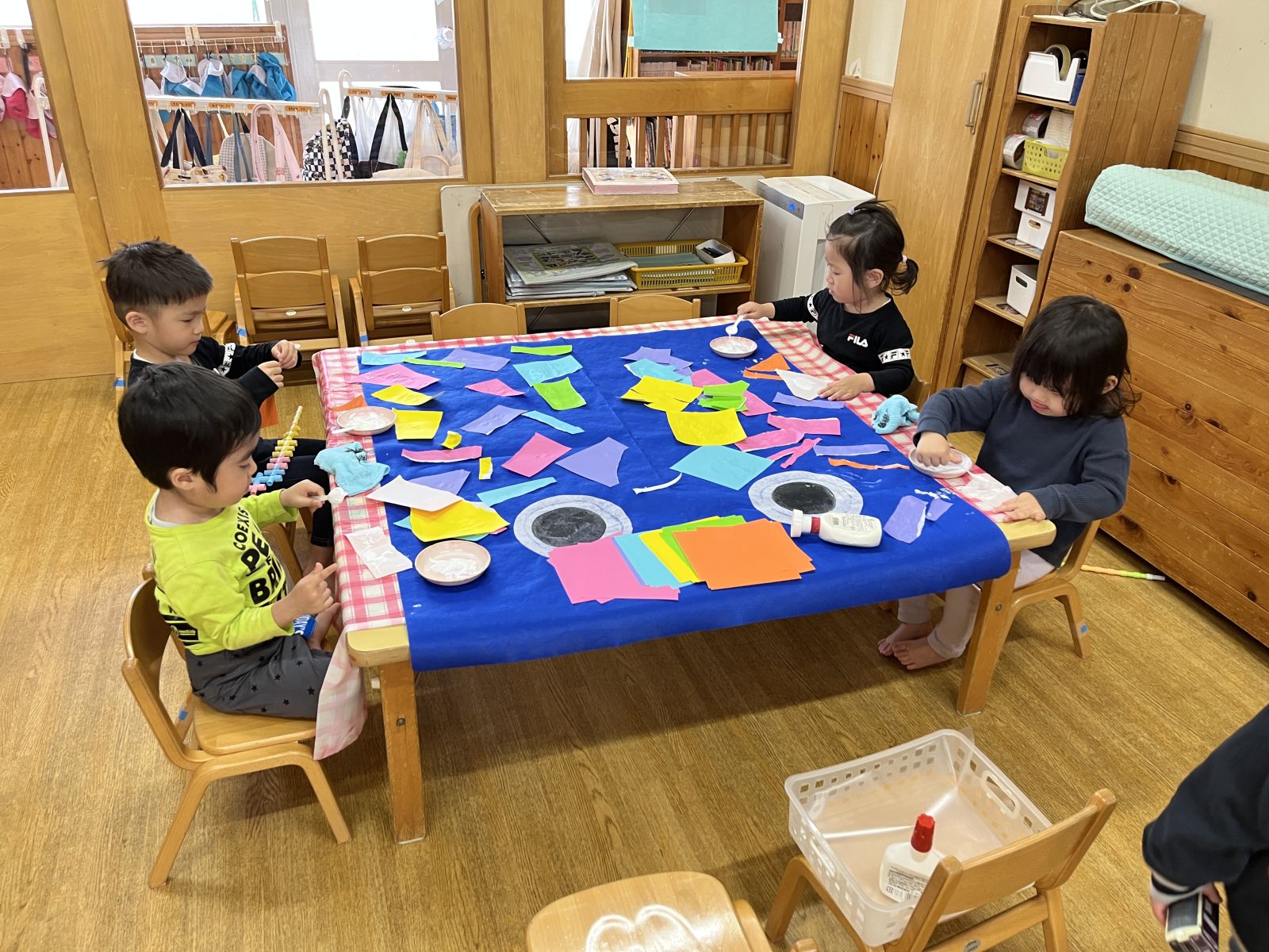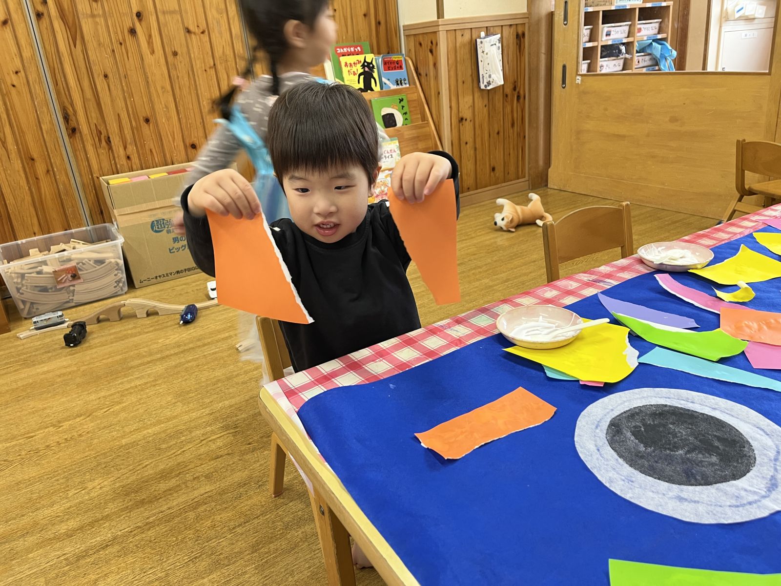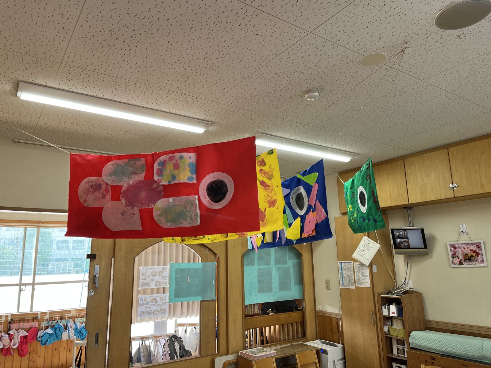 赤のこいのぼり→不織布を絵の具で色付けです。