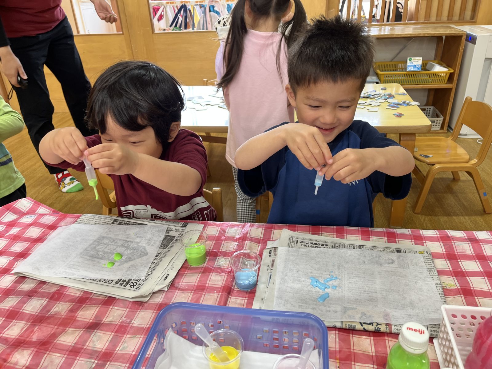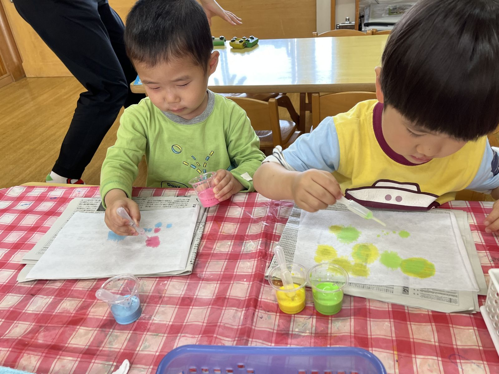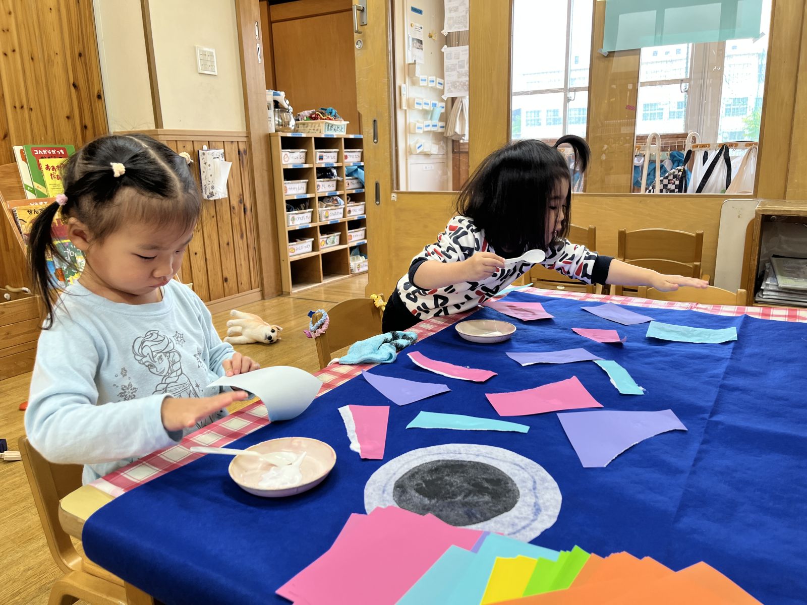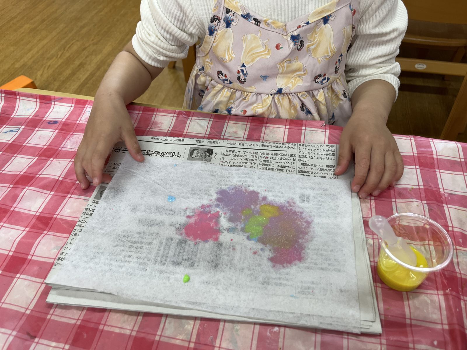 不織布の上で色を混ぜることも楽しんでいますよ♡
