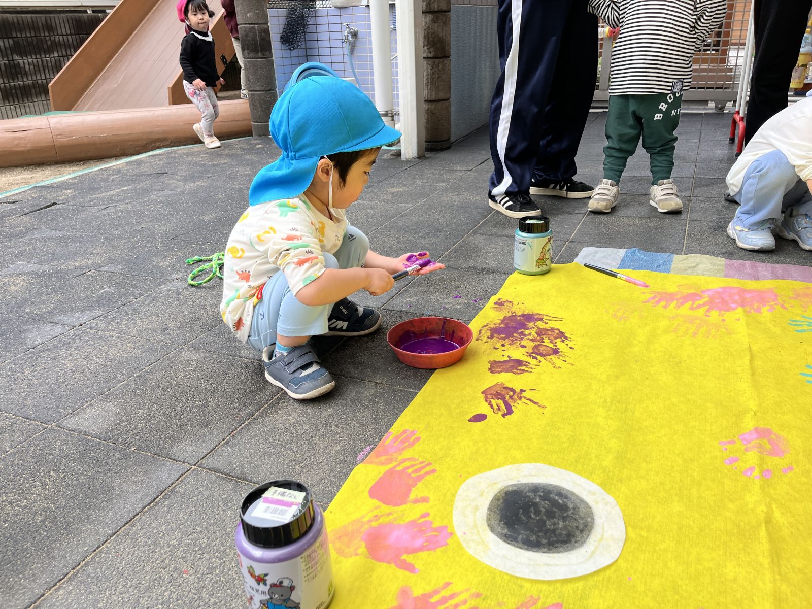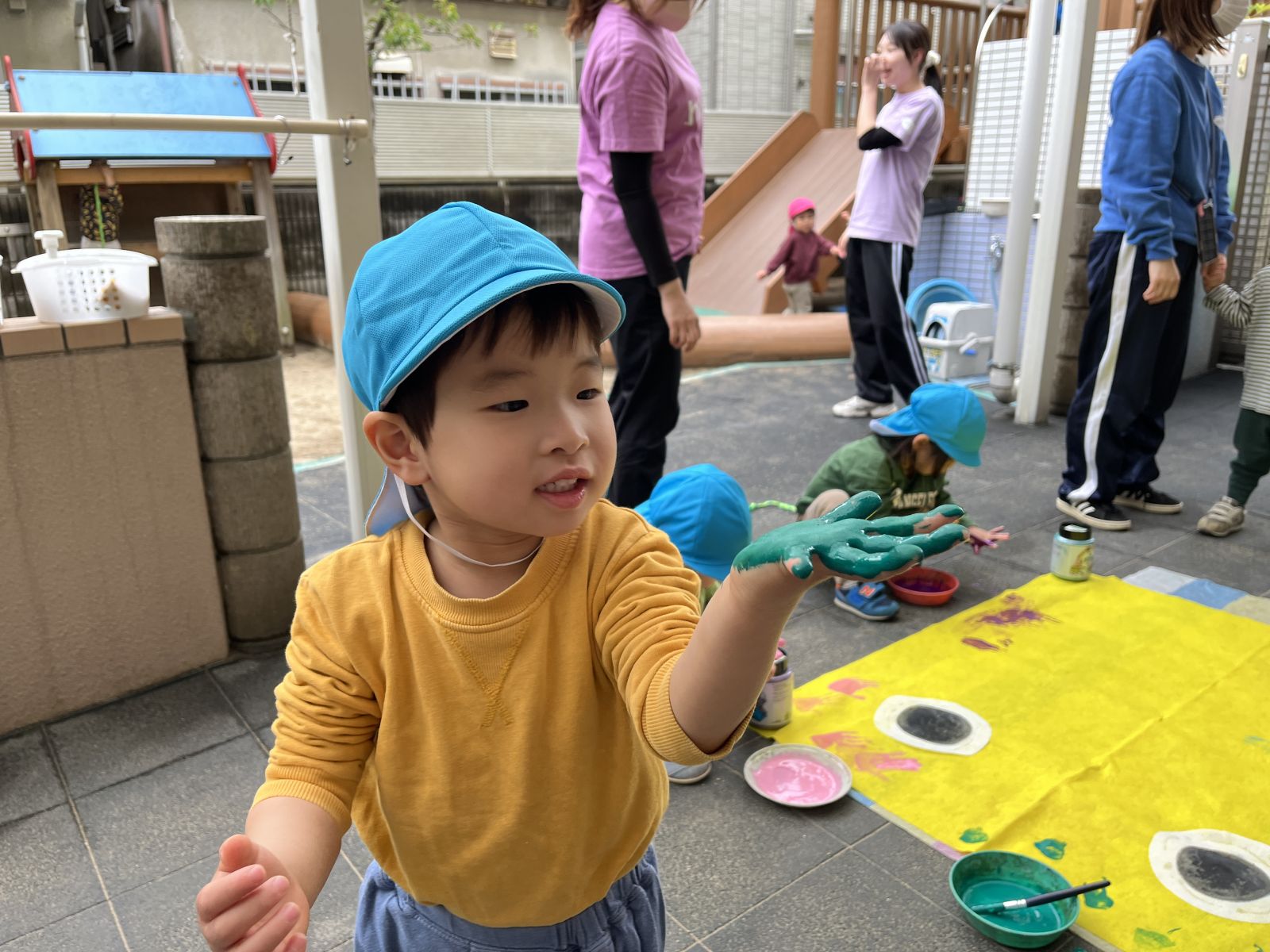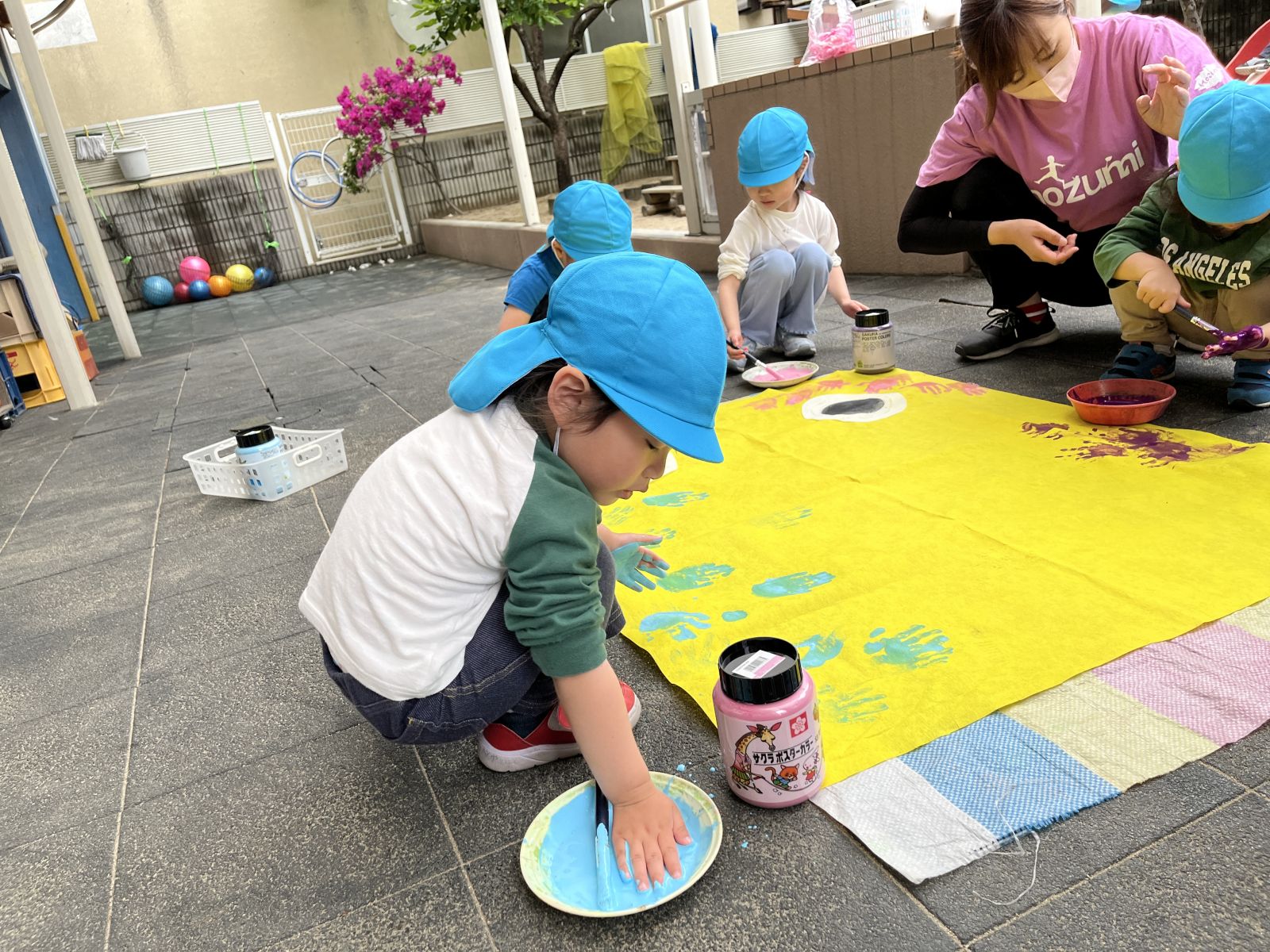 黄のこいのぼり→手のひらに自分で絵具を塗って手形を付けます。