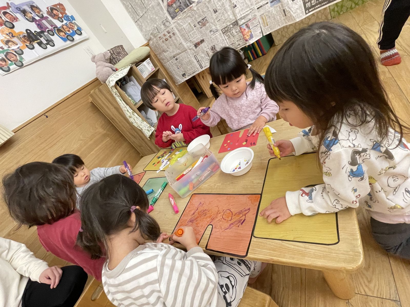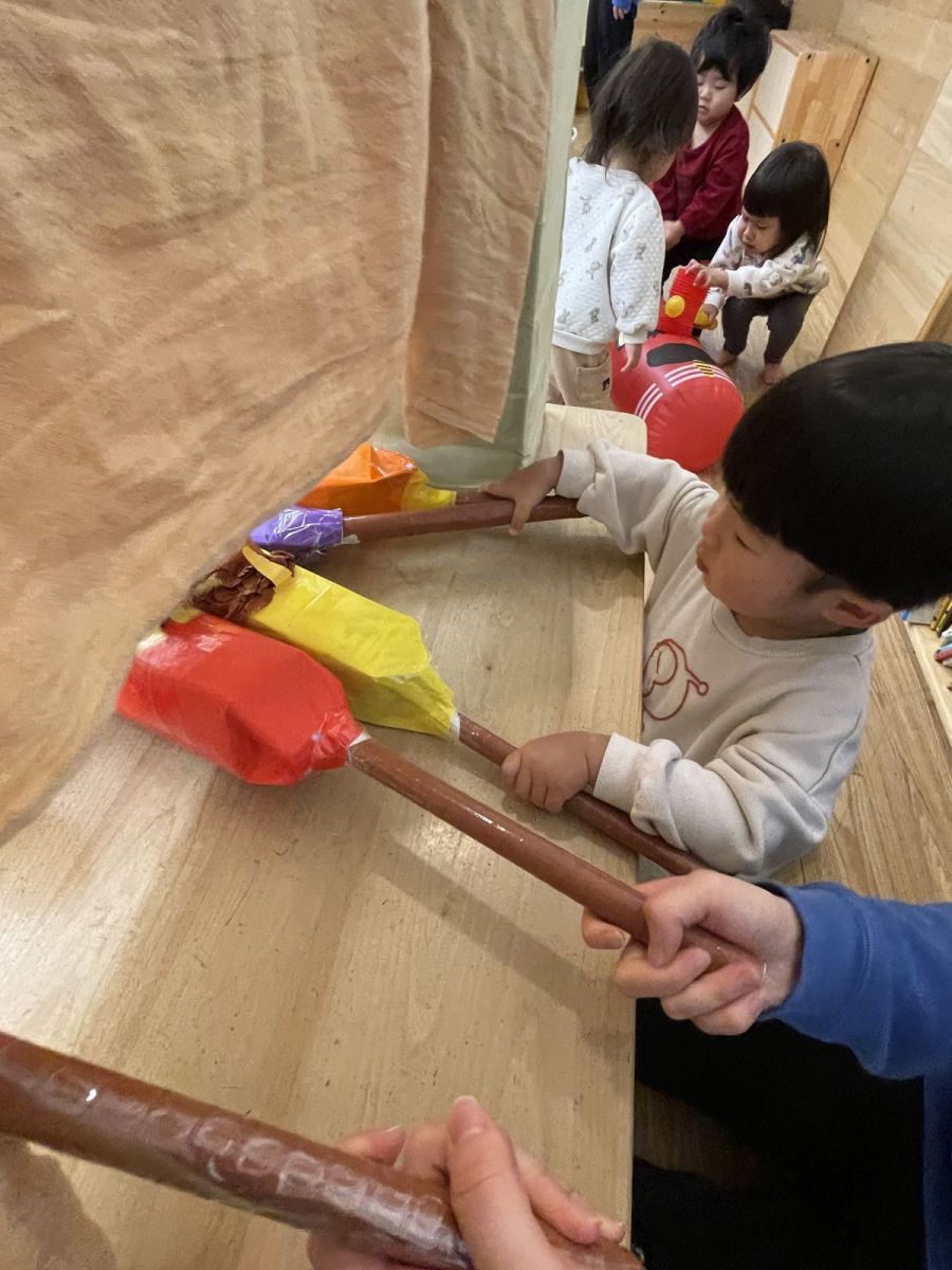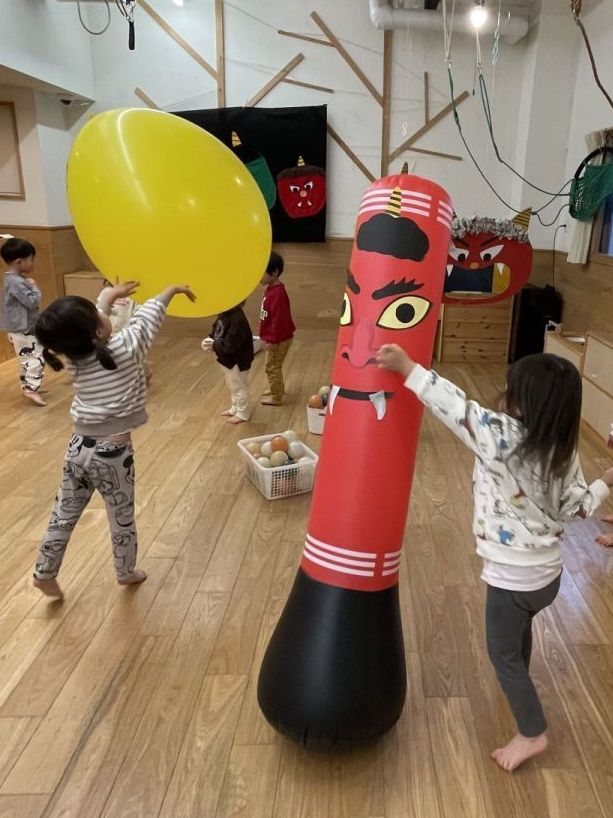 鬼のパンツはいいパンツ♫ 動物たちが鬼に変身してたね この時は、優しい鬼さんすきーと、笑っていましたが・・・ 鬼さんと一緒に遊ぼう!! パーンチ それっやっ!! バンバン 後ろで鬼さんを出すお手伝い 鬼のパンツ作り 鬼さんにくっつくかな 暗くなるとドキドキ あっ鬼がきたーーーーーーーーー!!! みんなびっくりしたね 鬼のご飯をまぜまぜ