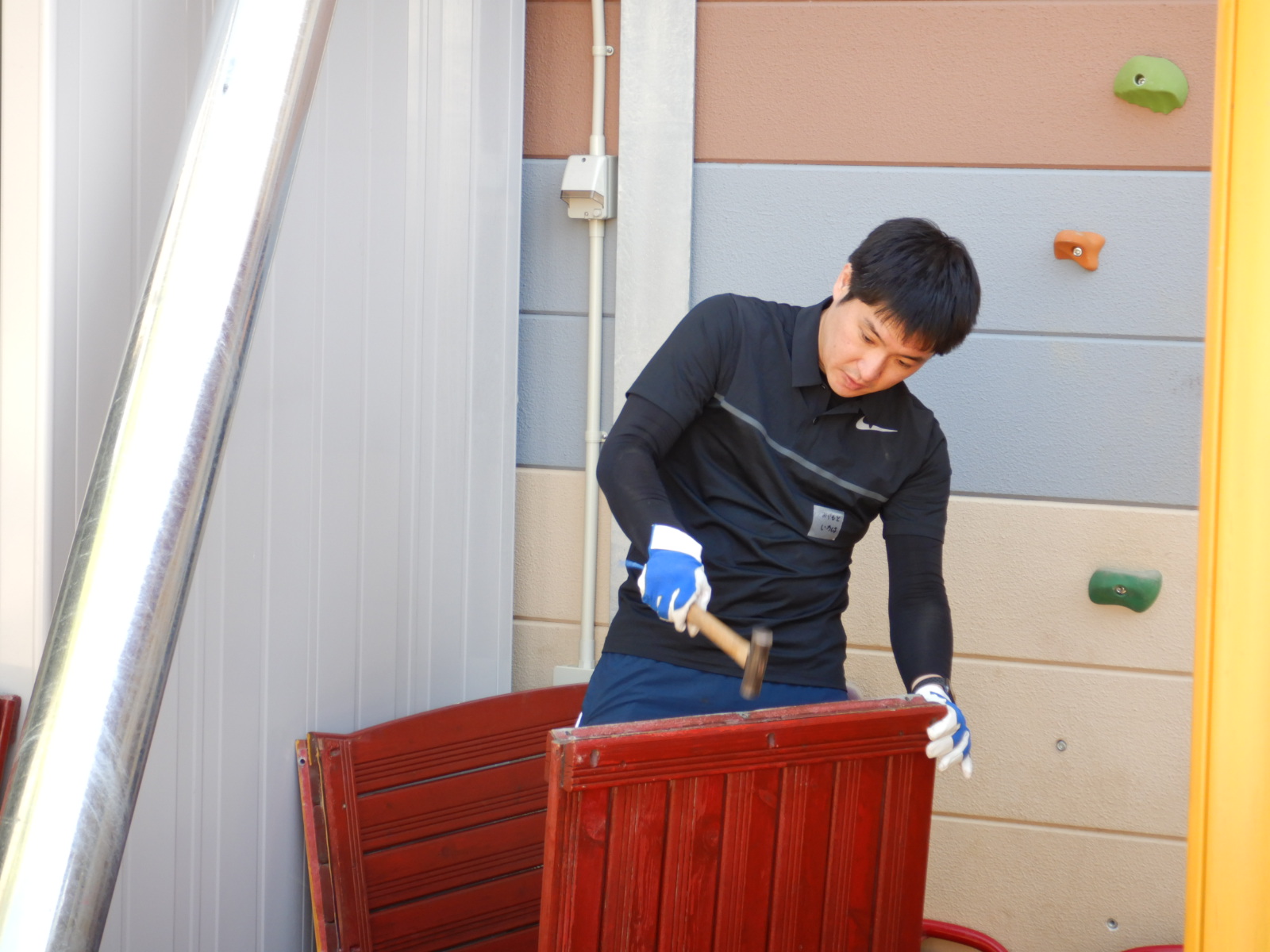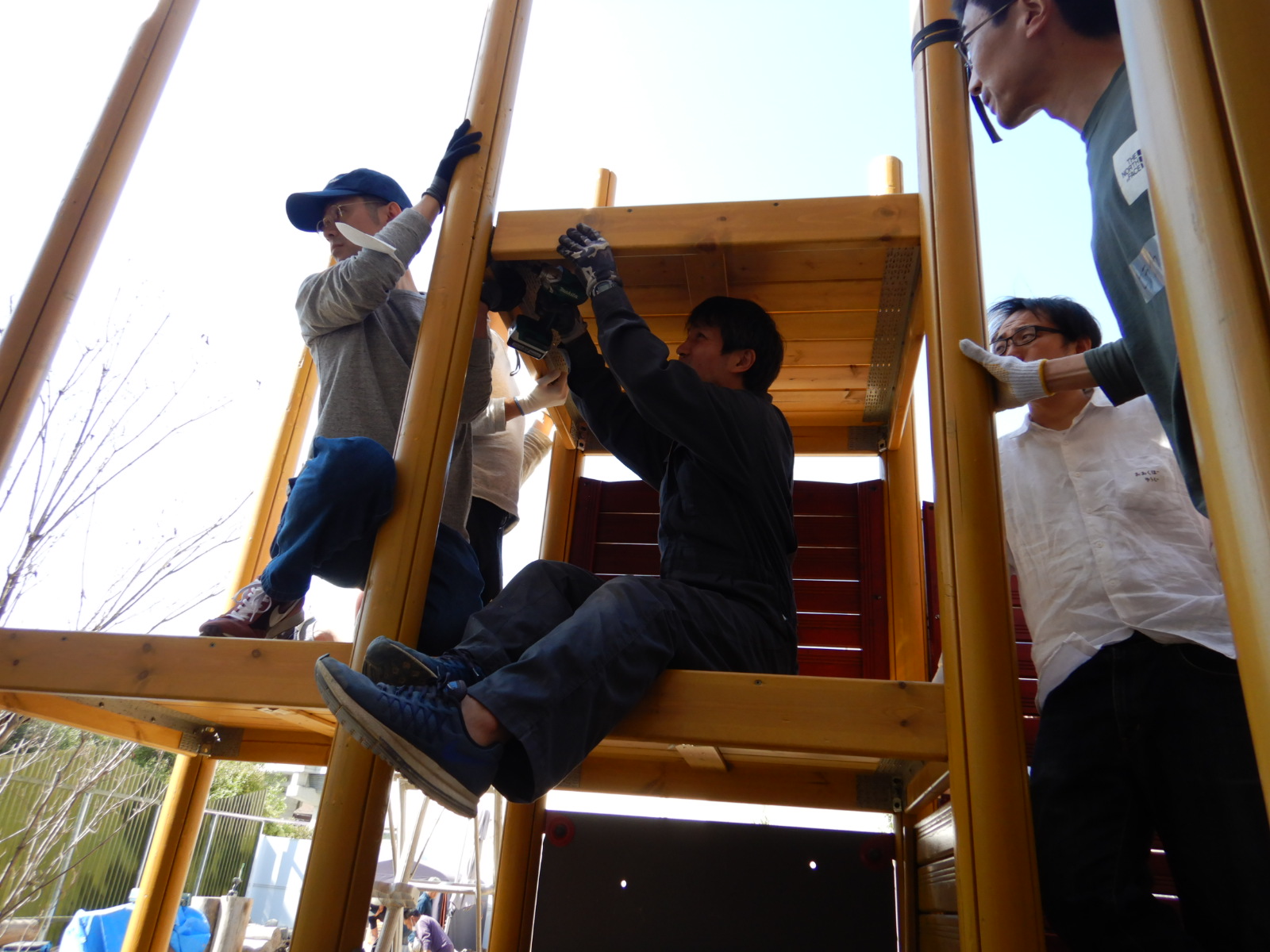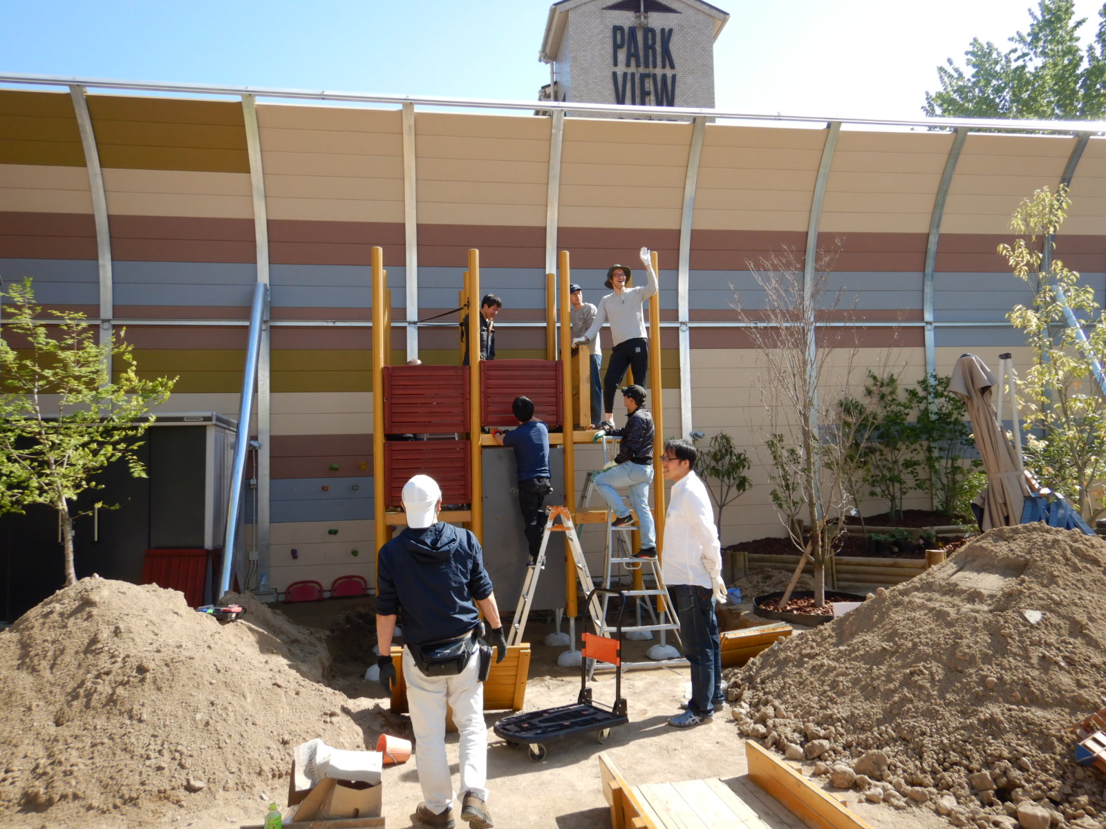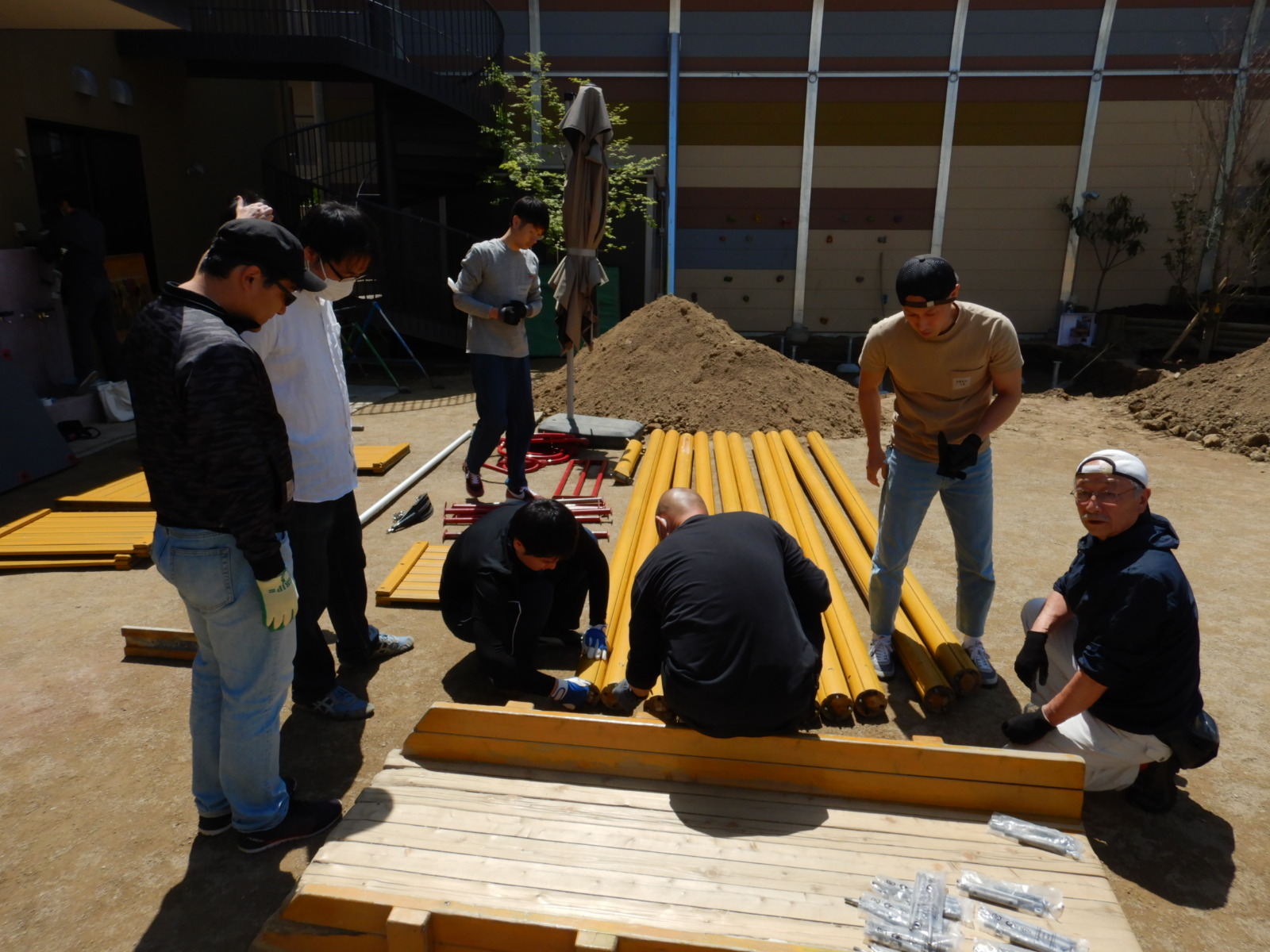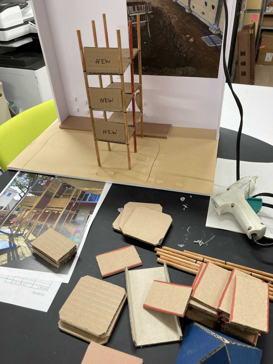 まずは教職員と共に模型をつくり、「おやじCAFE&BAR」でご協力頂くおやじ達に意見を頂きます