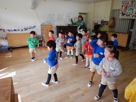 年中さんは自分たちで作った豆入れを使っていて、何だか楽しそう!!