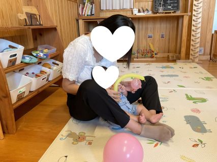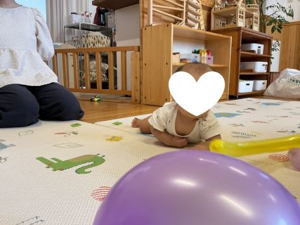 ハイハイで追いかけたり、お気に入りのふうせんをにぎにぎ!