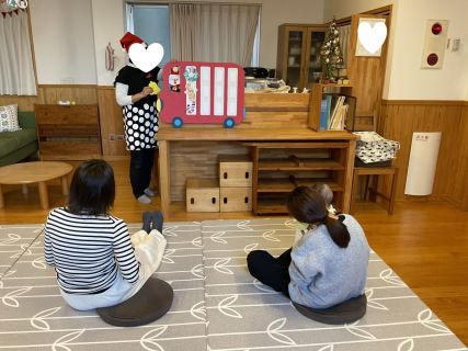 おやおや、赤いサンタバスがたくさんのお客さんを乗せてます♪