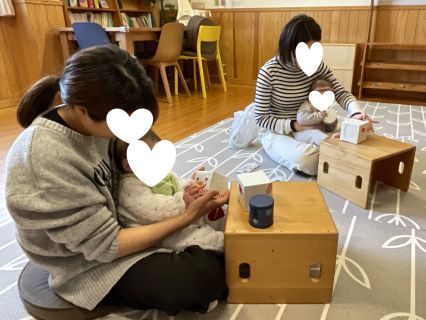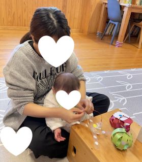 せいさくのシール貼りに夢中になるお友達や、つみきに興味津々なお友達も♪