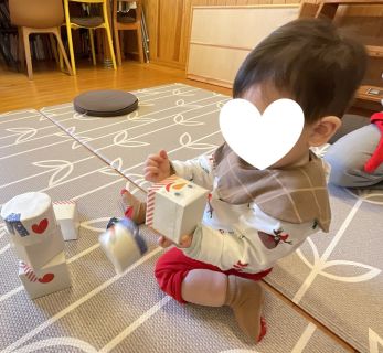 ゆきだるまさんのつみきをにぎったり、のせてみたり、おうちの人と楽しんだよ♪