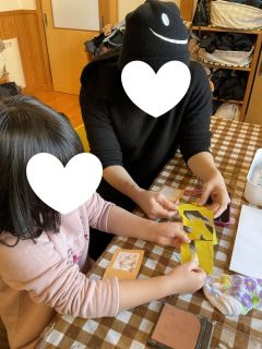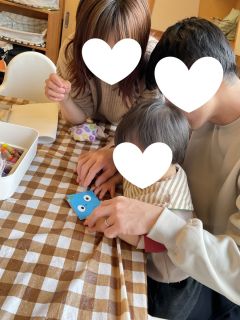 今年最初の『のびのびの日』は、パパもママも妊婦さんもあそびにきてくれましたよ! 前の公園へあそびに来られていた方も飛び入りで、みんなわいわい楽しそう♪ お友達に興味津々!!仲良くなれたかな。 パパもママも一緒にせいさくもしてたのしいな♪ ビリビリおにのぱんつ!丈夫なパンツができるかな? できあがり---☆ パパとママとお友達、みんなでボードゲームもいいね! またみんなであそびましょう♪