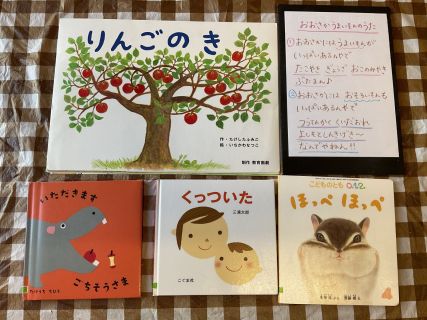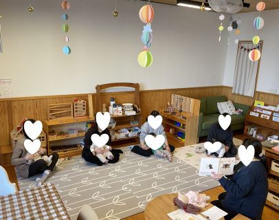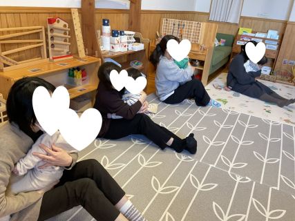 今回のぴよぴよの日は、絵本や紙芝居をみて、ふれあい遊びやおもしろいあそび歌を楽しみました♪