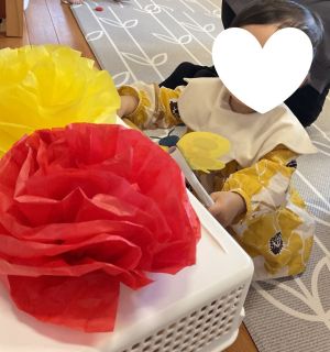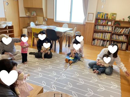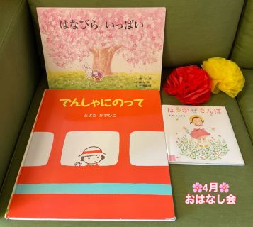 4月のおはなし会は、おはなにでんしゃにおさんぽに 春のお出かけが楽しくなる大型絵本や紙芝居を読みました。 おうちのひとのおひざにのって、こちょこちょでんしゃがレッツゴー!!! 『ちょうちょがね』のうたでは、かわいいちょうちょが あかいおはな、きいろのおはなにひらひらとまったよ♪ おさんぽやお出かけの時にもきれいなおはなやかわいいちょうちょが見つかりますように☆