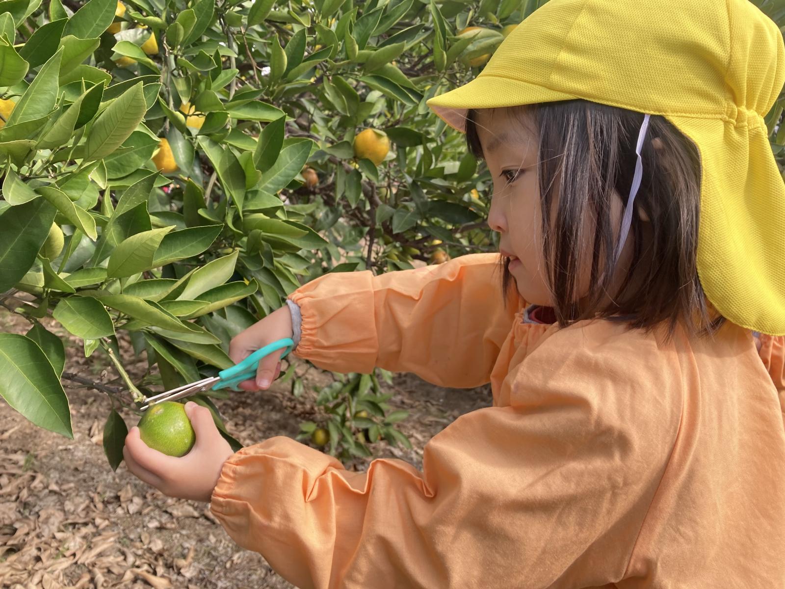 みかんを切るのは思ったより硬くて、一生懸命です。